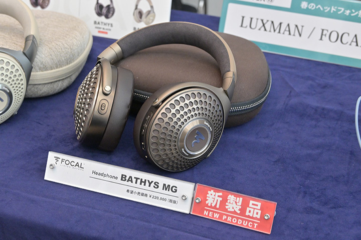 ラックスマンは、同社が取り扱うFOCALブランドから昨日発表したアクティブノイズキャンセリング(ANC)搭載Bluetoothヘッドホン「BATHYS MG」(約24万円、6月発売)をさっそく展示した。