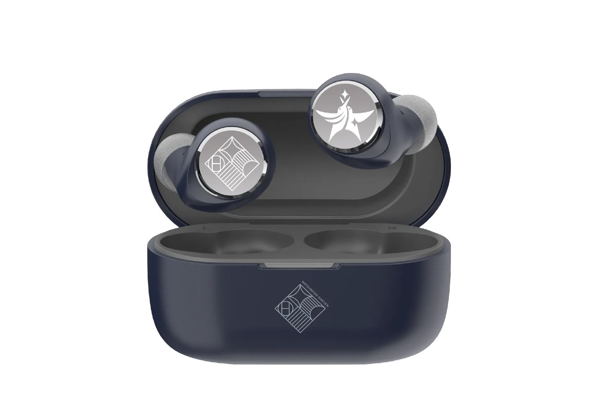 AVIOTの完全ワイヤレス「TE-V1R」をベースとしつつ、ハウジングに作中の校章とシンボルマークをデザイン。ネイビー×グレー×シルバーのカラーで、普段使いもしやすい仕上がりだとしている。パッケージも、キャラクター12名が本コラボだけのオリジナル衣装をまとったスペシャルデザインで用意。
