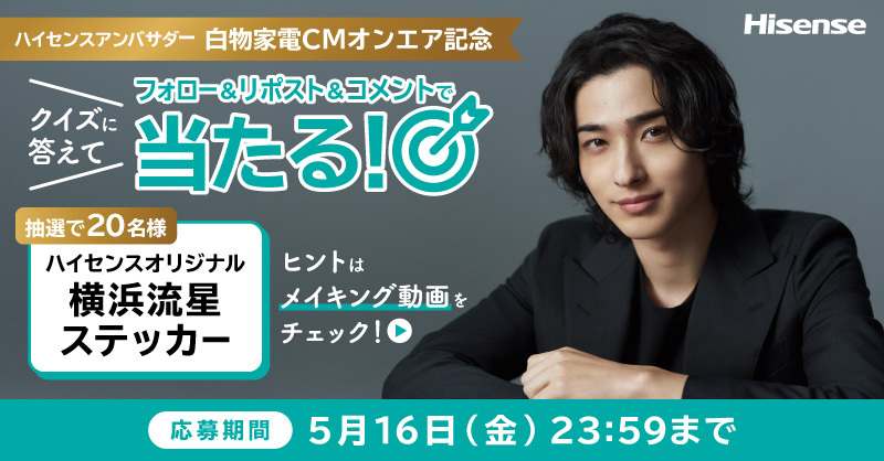 ハイセンスは、4月30日(火)より、俳優・横浜流星さんが出演する新CMを全国で順次公開した。同日、それにあわせて、有明セントラルタワーホールにてハイセンスジャパン「新商品・新CM 発表会」が開催された。