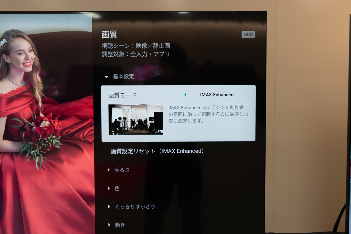 併せて、高画質プロセッサー「XR」が映像をエリア毎に分析し、映像の暗い部分の電流を明るい部分に集中させることでコントラストを高める技術「XR Contrast Booster 10」も投入されている。HDRフォーマットは、Dolby Vision/HDR10/HLGをカバーしており、IMAX Enhancedにも対応している。
