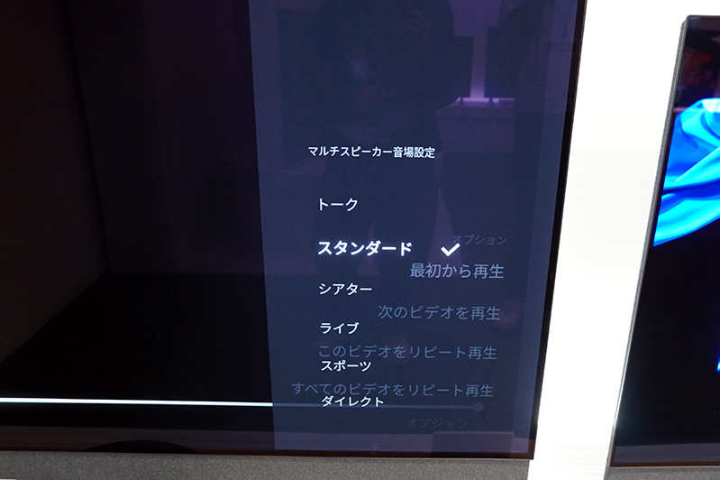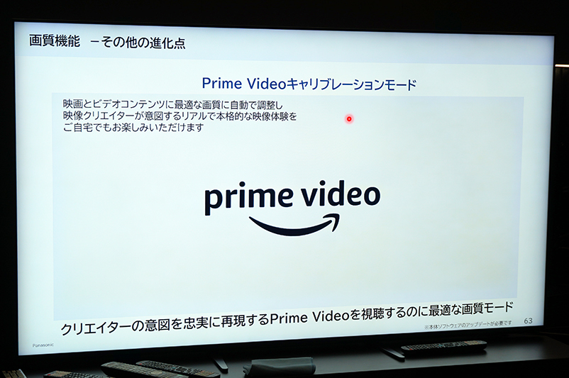 Prime Videoの映像制作部隊からの意見を元にした、映画やビデオコンテンツに最適な画質に自動調整するというモードで、映像クリエイターの意図を忠実に再現する本格的な映像体験が味わえるとのこと。なお、本モードはPrime Video接続のもと映像モードからオン/オフが行える。
