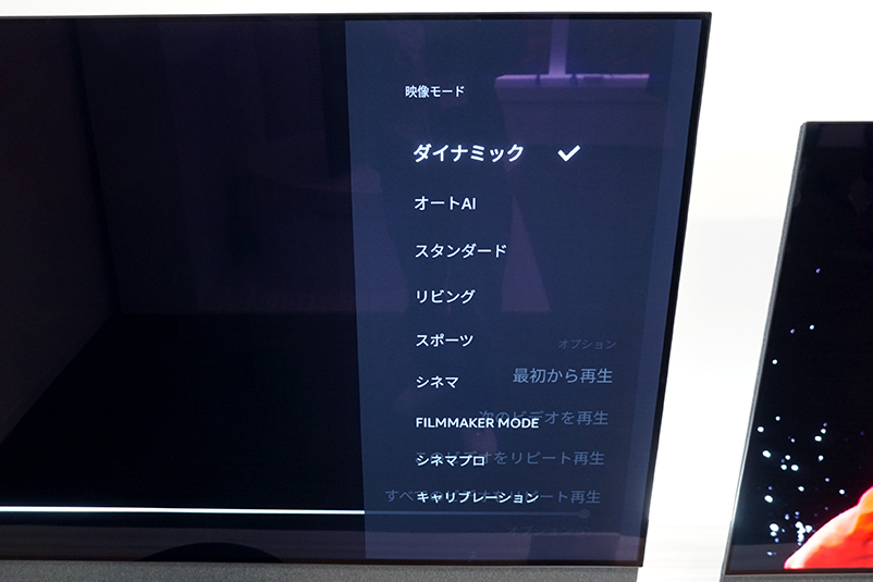 「Prime Videoキャリブレーションモード」は、Prime Videoの映像制作部隊からの意見を元にした、映画やビデオコンテンツに最適な画質に自動調整するというモードで、映像クリエイターの意図を忠実に再現する本格的な映像体験が味わえるとのこと。なお、本モードはPrime Video接続のもと映像モードからオン/オフが行える。