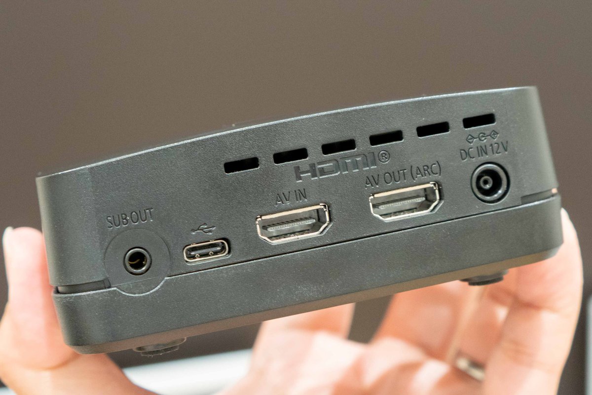 HDMI端子は2基搭載、「AV IN」がゲーム機との接続用になっており、ゲームソフトに収録されている5.1chサラウンドの音声を入力することができ、4chコンバートでのサウンドで再生することが可能だ。「AV OUT(ARC)」はテレビ接続用の端子であり、放送番組やVODサービスなどの映像コンテンツをバーチャルサラウンドで出力できるとしている。また、HDMI接続は低遅延であることもアピールする。