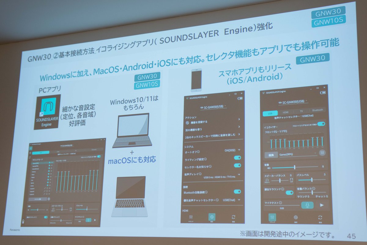 専用のイコライジングアプリ「SOUNDSLAYER Engine」は、Windows/Mac/Android/iOSまで対応OSを拡大。入力切替などもアプリ側から操作可能となった。
