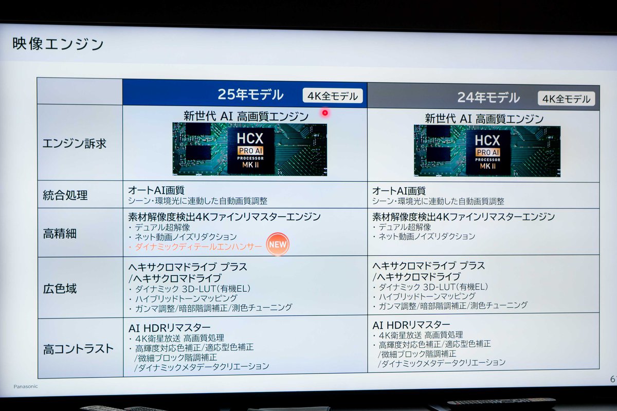 「新世代AI高画質エンジン」では、放送番組や映画コンテンツなど、100万を超える映像シーンから構成される学習用データベースを基に、AIを用いて映像シーンと視聴環境に合わせて最適な高画質処理を施す「オートAI画質」が導入されている。