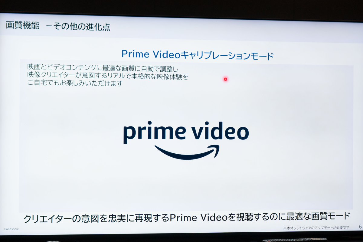 VODサービスと連携した高画質機能では、Netflix専用にチューニングされた映像モード「Netflixアダプティブ画質」を搭載していたが、本シリーズからはクリエイターの意図を忠実に再現するPrime Videoでの視聴に最適化されて映像モードである「Prime Videoキャリブレーションモード」も投入された。本機能は本体ソフトウェアのアップデート後に対応予定だという。