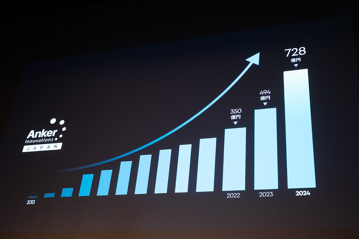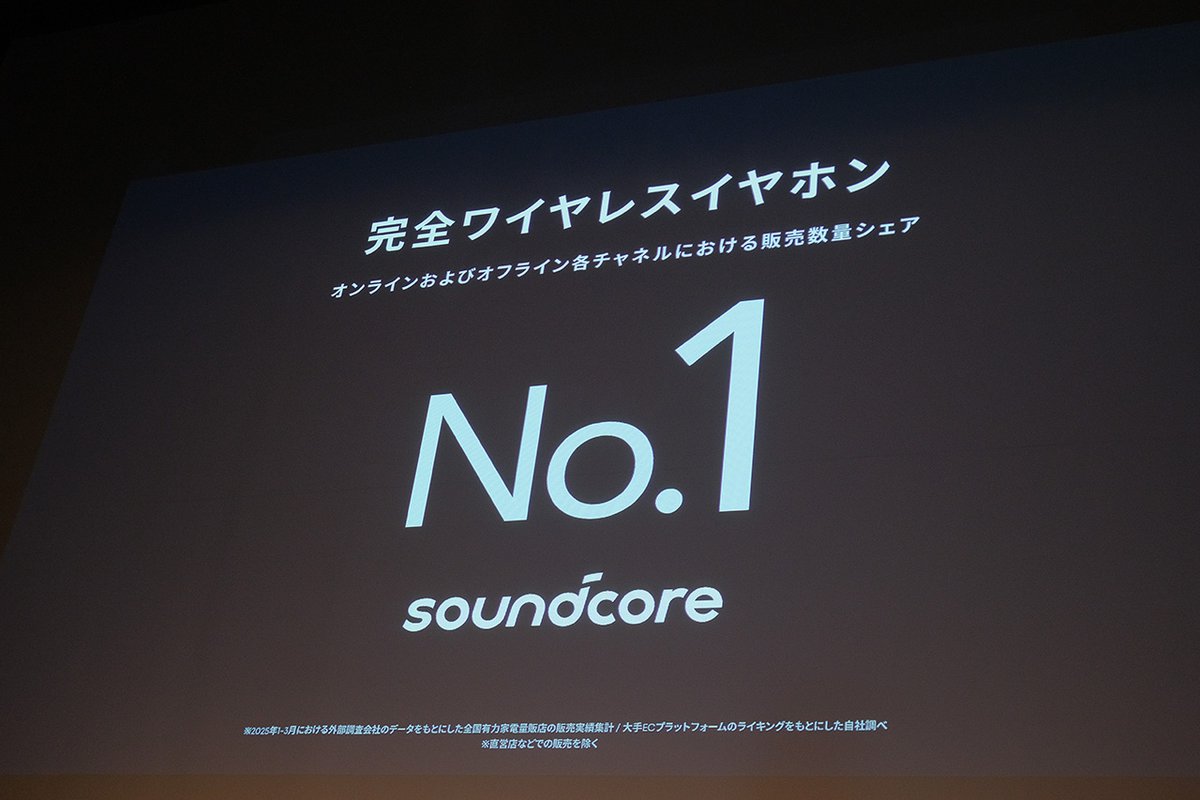 この成長の背景のひとつとして「製品の進化と広がり」を挙げ、チャージャー製品からオーディオ、プロジェクター、ポータブル電源、ロボット掃除機などほぼ全てのカテゴリーで急速に成長することができたと説明。中でもイヤホンカテゴリーは大きな飛躍を遂げ、販売数量シェアでSoundcoreブランドがナンバーワンを獲得したという。