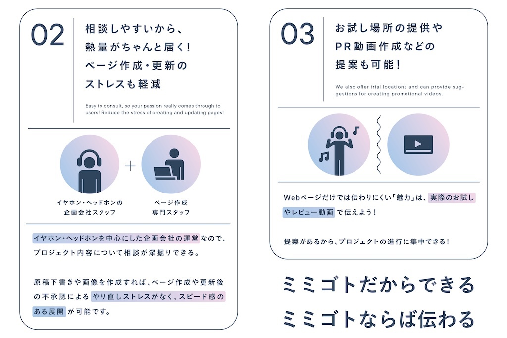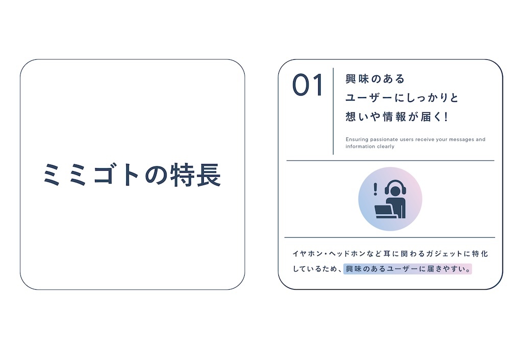 耳まわりのガジェットに特化することで関心の高いユーザーへと情報が届きやすく、かつe☆イヤホン各店での試聴場所の提供やPR動画作成といったプロジェクト支援の提案も可能。さらにイヤホン・ヘッドホンを中心とした企画会社が運営するため、プロジェクト内容について深掘りした相談も可能だとしている。