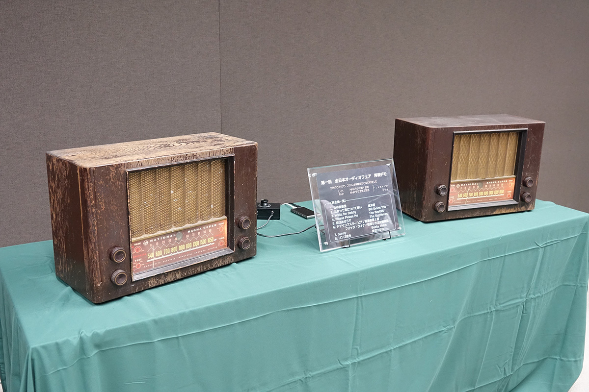 また、OTOTENの母体とも言える「全日本オーディオフェア」の第1回(1952年開催)で実施したという、2台のラジオによるステレオ再生体験デモを再現。NHKラジオ第一からLチャンネル、第二からRチャンネルの音を流し、それを2台のラジオで受信して一緒に聴くことでステレオ再生になるという仕組みだ。