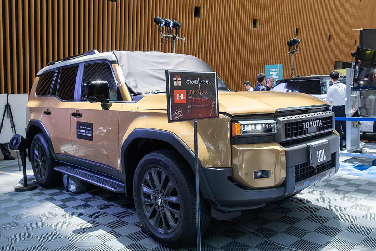 ハーマンインターナショナルは、同社JBLブランドのプレミアムサウンドシステムが搭載されたトヨタ「ランドクルーザー 250」の展示を実施。14スピーカー+専用アンプを搭載し、同車で「JBLのサウンドを再現」すべく専用チューニングが施されているという。