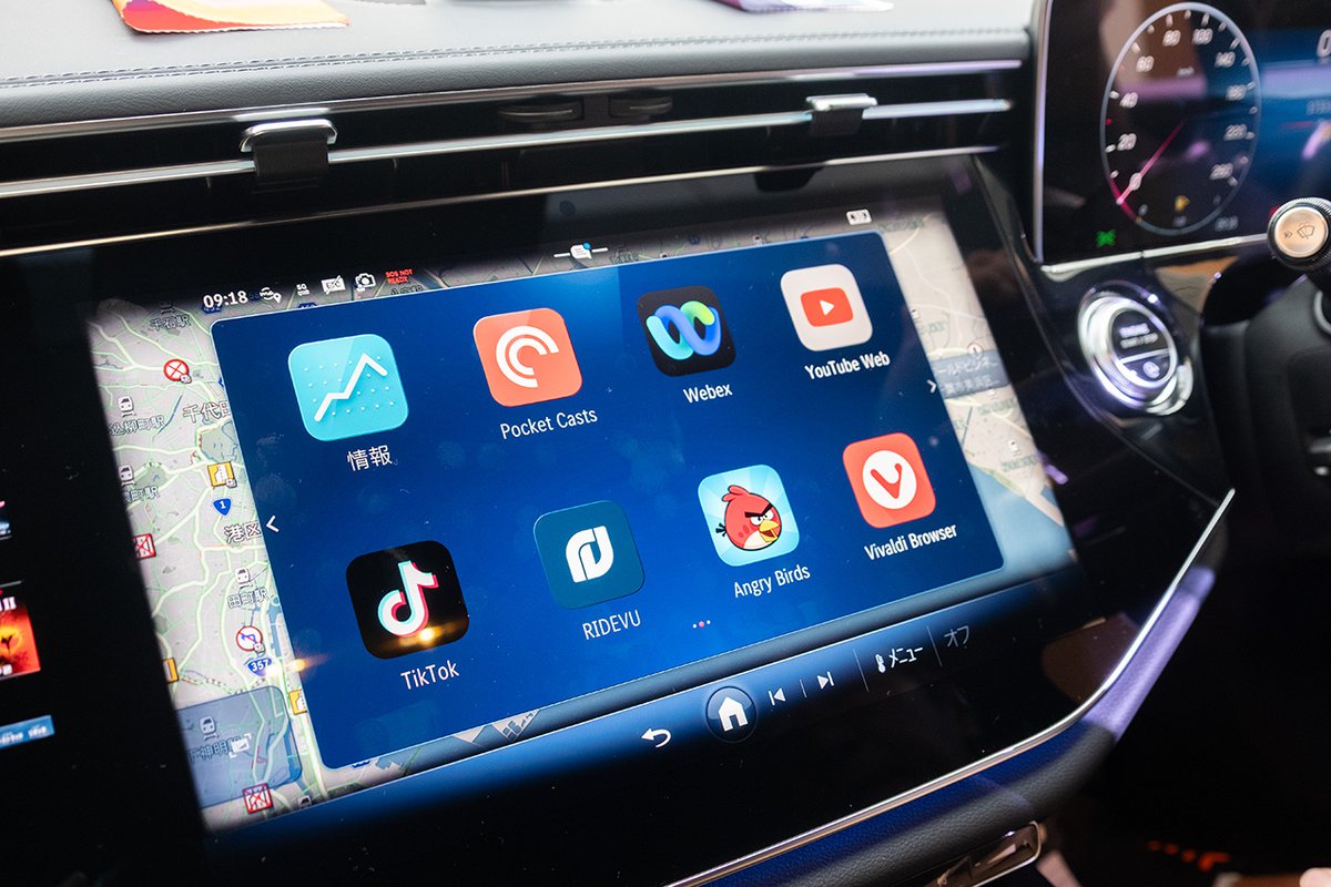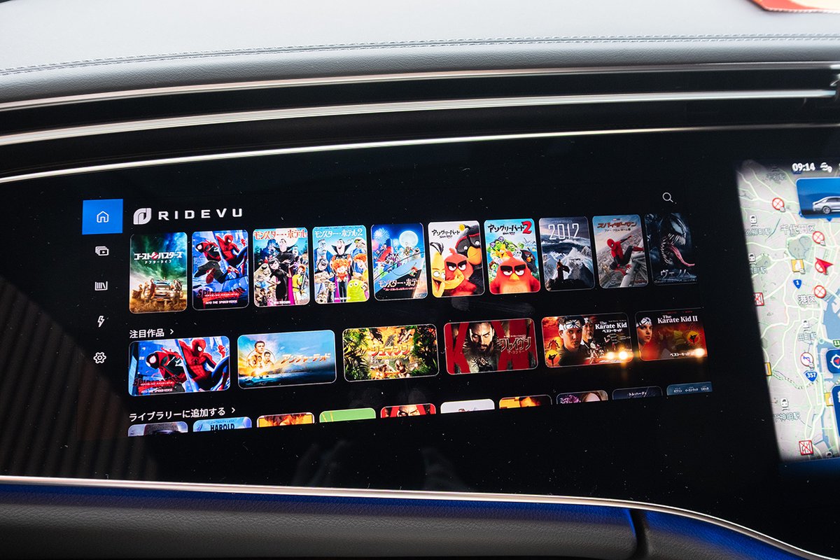 RIDEVUは昨年12月よりベンツ車への提供がスタートしており、フロントディスプレイはもちろん、オプションの後部座席用のディスプレイ、またスマホやタブレットでも利用することが可能。現時点で約800ほどのコンテンツが用意され、IMAXコンテンツの配信も行われている。