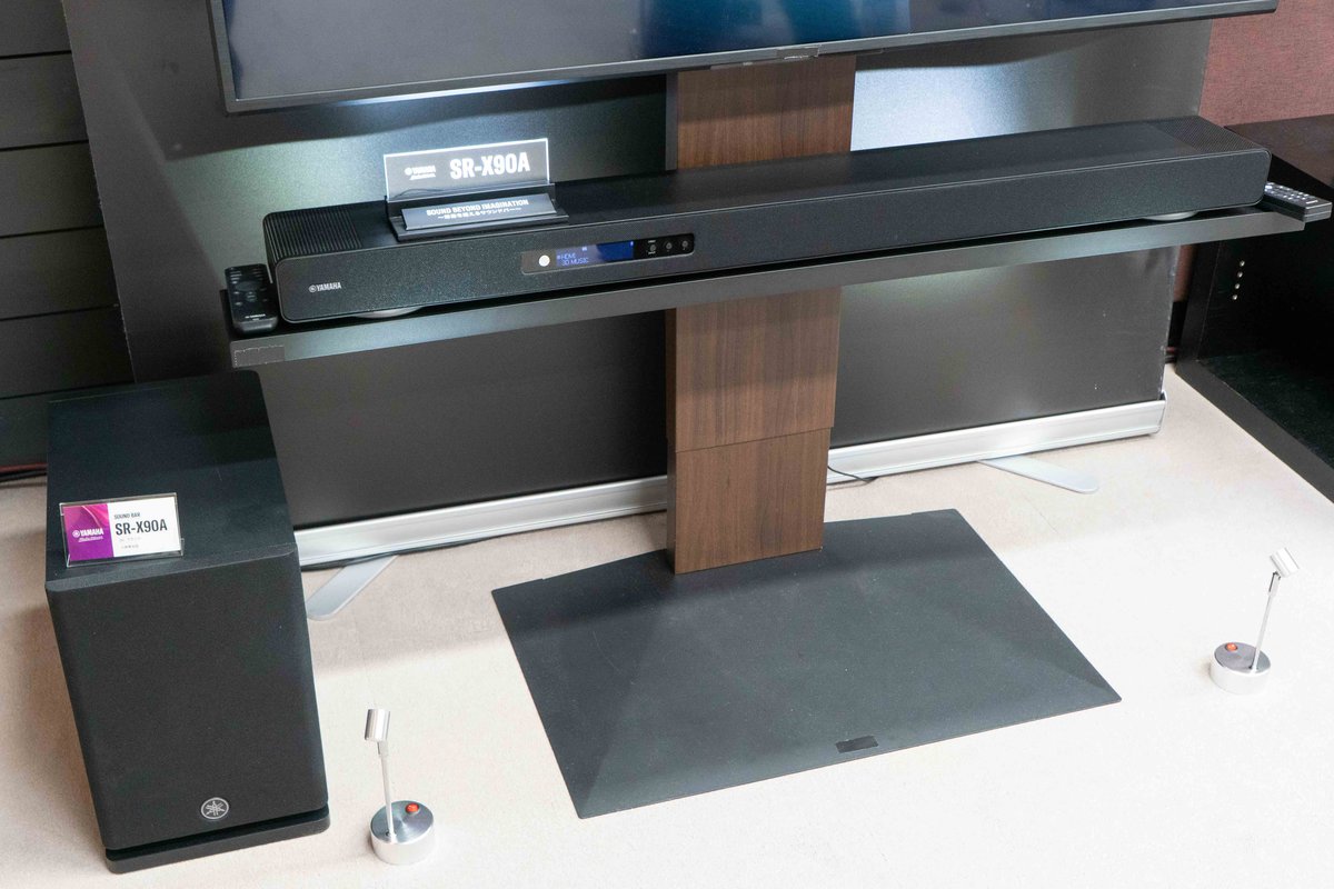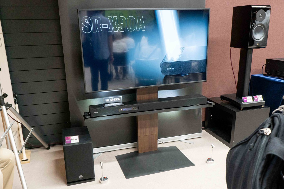 ヤマハブースでは、事前告知のとおり未発表のハイエンド・サウンドバー「SR-X90A」を参考出展していた。価格や発売時期については未定だが、開発スタッフが登場するセミナーによれば、同社のDSP技術「SURROUND:AI」をサウンドバーとして初めて採用しているという。