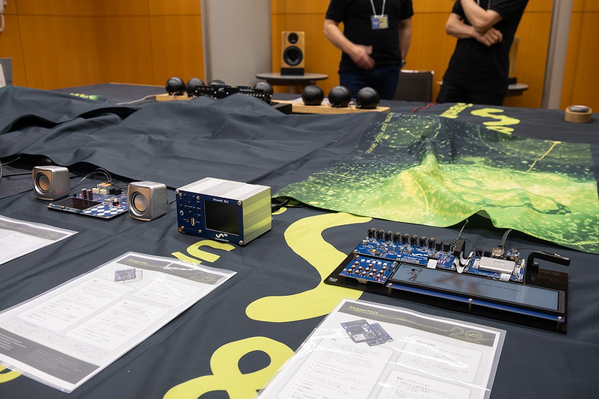 今回は初の試みとして、DTS:Xフォーマットでアート映像作品を製作し、イクリプスの7.2.4ch環境で再生するとともに、Headphone:X体験コーナーにも同じコンテンツを用意。2つの環境を聴き比べてHeadphone:Xのイマーシブの再現性がどれほどのものかを確かめることができるようになっていた。