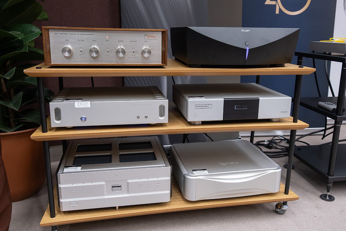デジタルストリームは発表されたばかりのDS Audio初となるモノラル光カートリッジの試聴デモや、偏心検出スタビライザー「ES-002」の紹介などに加え、さまざまなメーカーの光カートリッジ対応フォノEQ/アンプ製品の聴き比べなどを実施。
