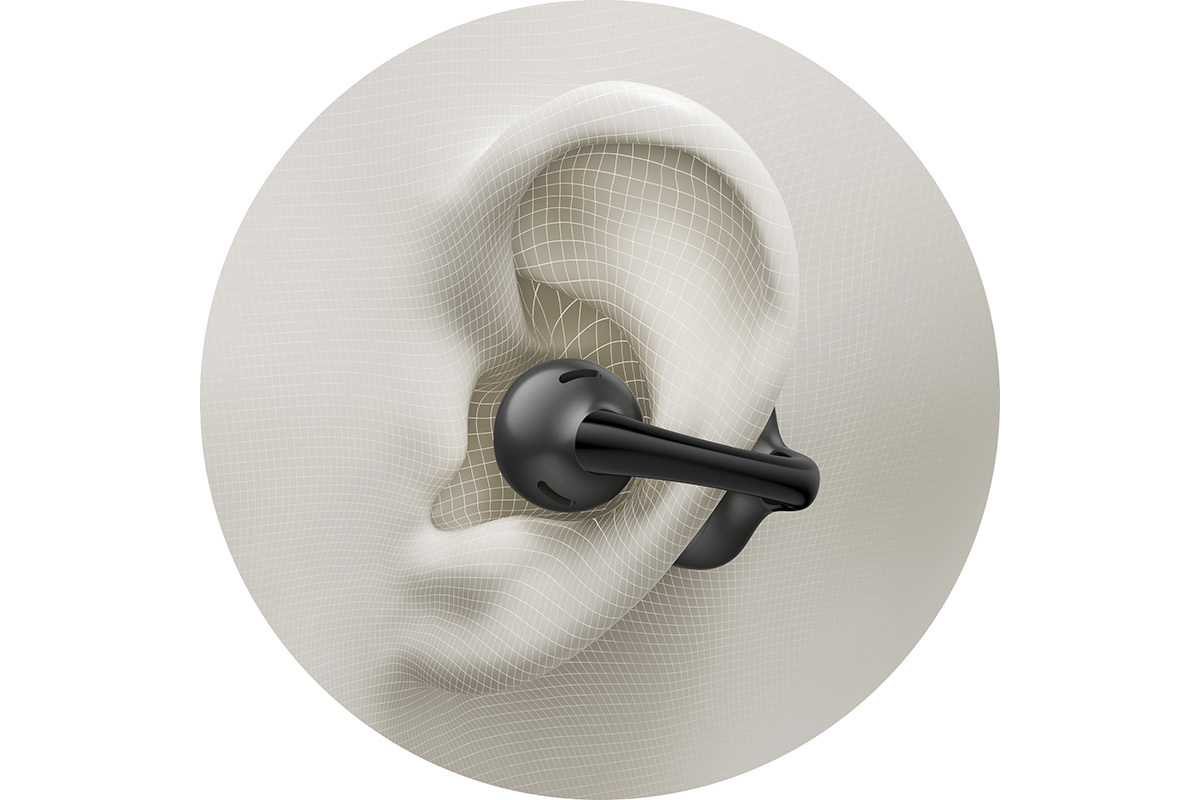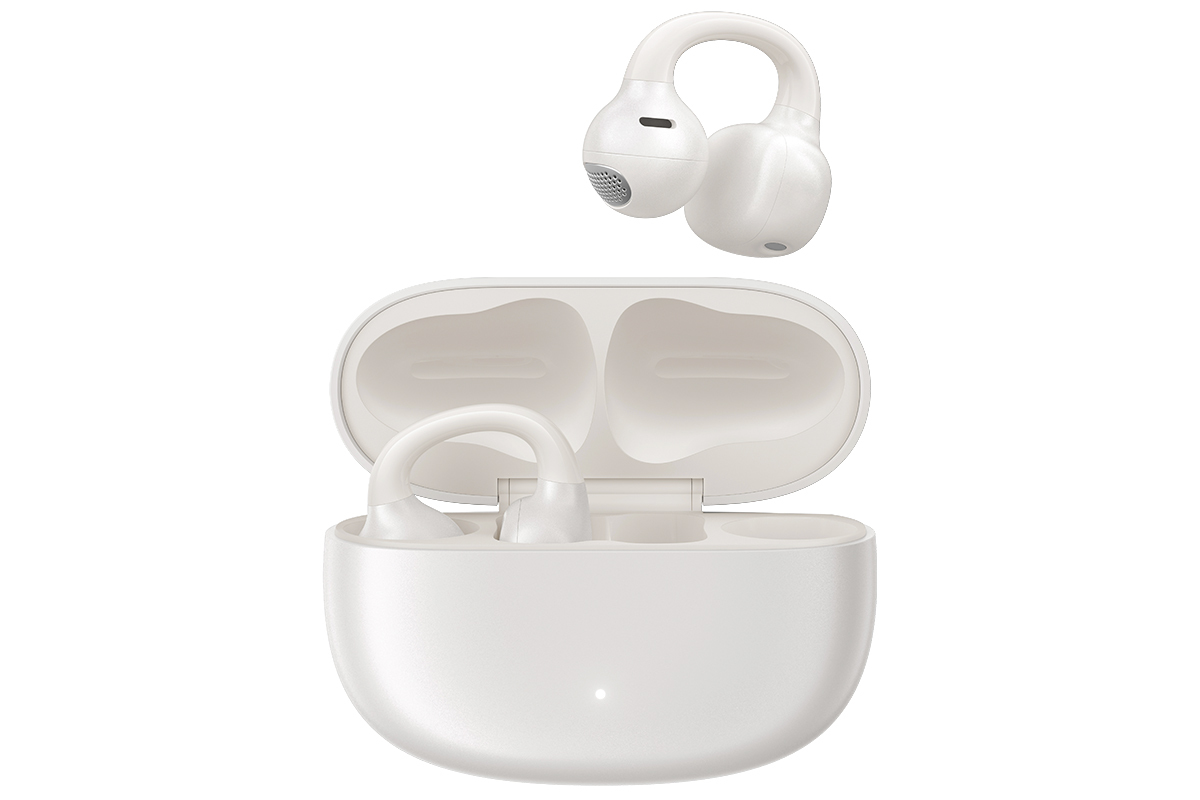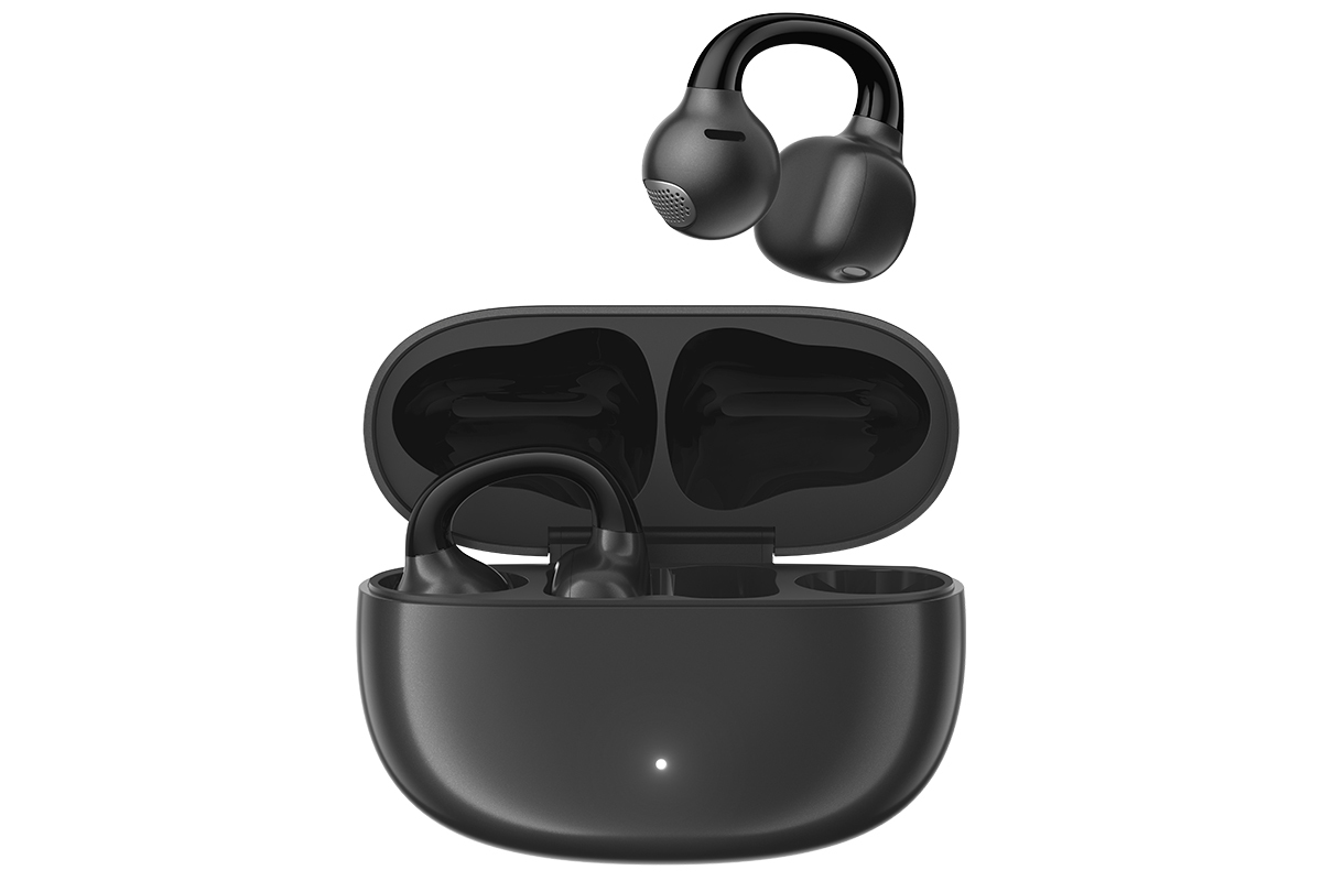 同社イヤーカフ型完全ワイヤレスイヤホンのエンリーモデル。本体には、形状記憶特性を備えたニッケル合金ワイヤーを採用。片耳わずか約5.4gの軽量設計とも相まって、長時間でも快適な装着感を実現したとアピール。また、イヤホン左右で同じデザインとすることで、左右を問わず充電ケースへの収納や耳への装着ができる。