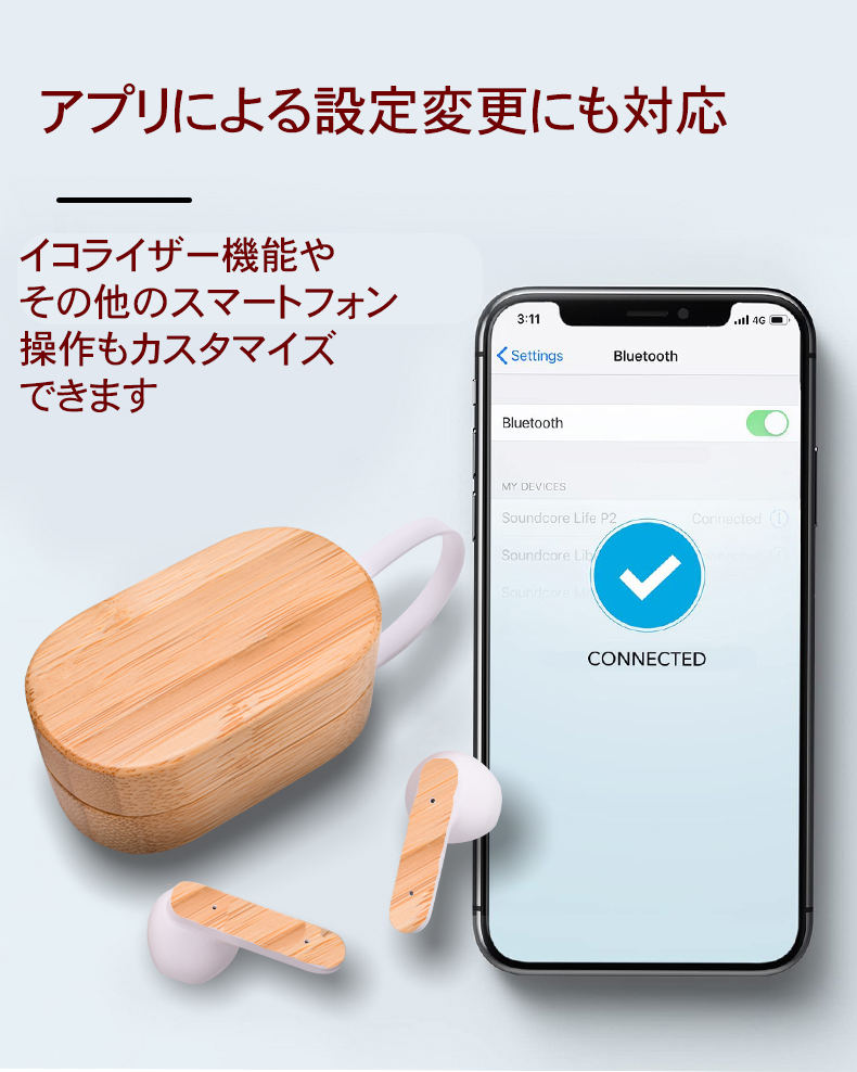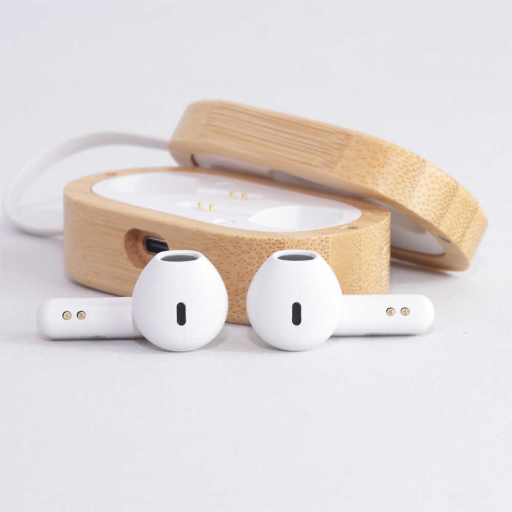 環境問題に配慮し、バッテリーケースには竹素材を、イヤホン本体のシェルには再生プラスチックを採用した完全ワイヤレスモデル。バッテリーケースは2つに分かれて開く構造となっており、よりコンパクトなサイズ感を実現しているほか、防水防塵機能はIPX4に準拠。竹ならではの触り心地も大きな特徴だとアピールしている。