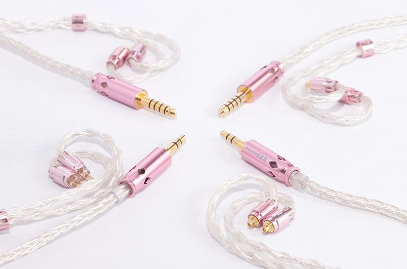 プラグ素材は金メッキ真鍮を使用し、外装部分はアルミ合金を使用。イヤホン側コネクターはMMCXと0.78mm 2Pin、プレーヤー側プラグは3.5mmと4.4mmバランスを用意し、それぞれを組み合わせた計4モデルをラインナップする。ケーブル長は120cm±2cm 。