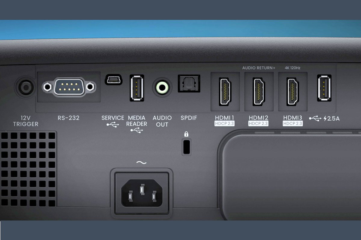 入出力端子も共通で、HDMI×3基(eARC×1、4K/120Hz×1)、光デジタル音声出力×1基、ステレオミニ出力×1基、USB Type-A×2基(メディア用×1、2.5A給電用×1)、USB Mini Type-B×1基(ファームウェアアップデート用)、RS-232×1、トリガーアウト×1基(DC 12V)を備える。スピーカーも内蔵し、W4100iは5W×1、W2720iは5W×2を搭載する。