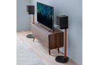 高さ56.3〜100cmまでの無段階調整に対応し、リスニング環境や使用シーンに応じてスピーカーを耳の高さに調節することが可能。同社は高音はまっすぐ進むためスピーカーが低いと音が届きにくくなるが、スタンドで耳の高さに揃えることで低音から高音まで正確な聴こえを実現すると説明している。