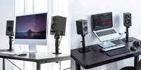 サンワサプライ、高さや天板の角度を無段階調整整できるスピーカースタンド。最大耐荷重15kg