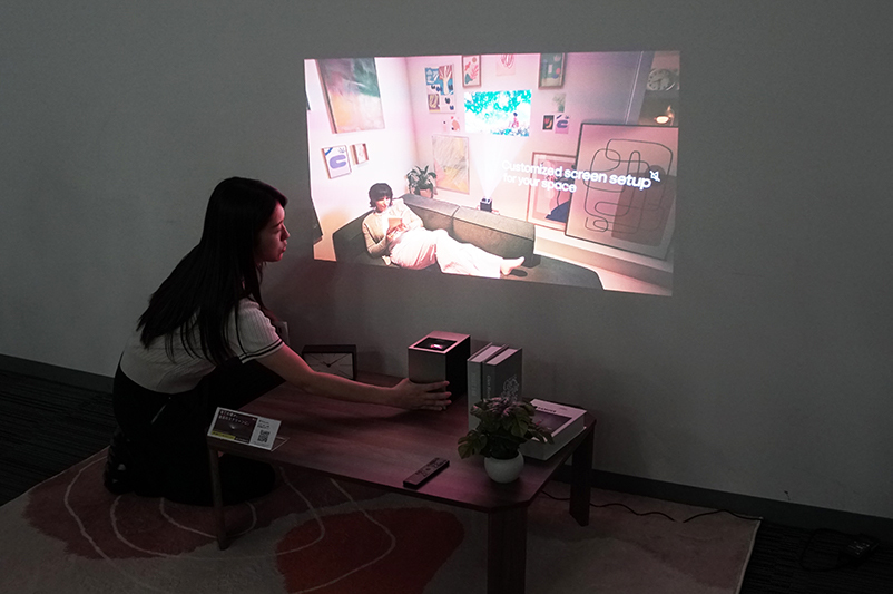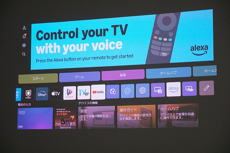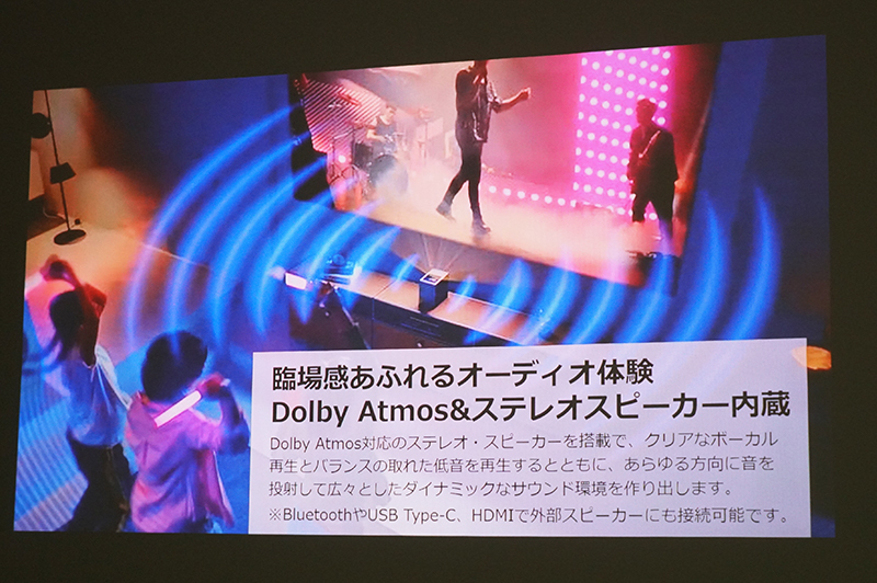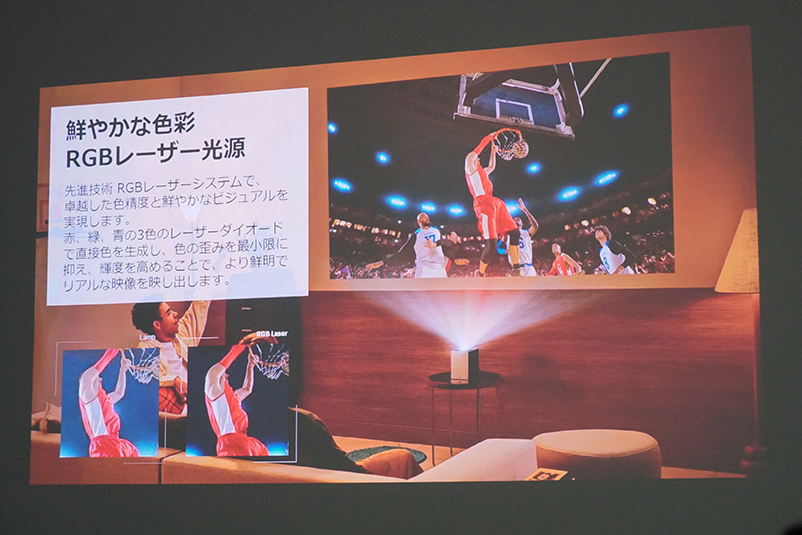 これにより、プロジェクターのために大きなスペースを作る必要がなく、壁とプロジェクターの間を人が横切る心配もないことで、より自由なコンテンツ視聴が可能になったとアピールしていた。