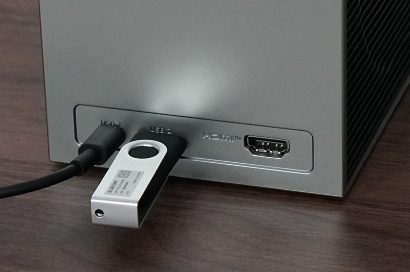 インターフェースは、USB Type-C端子がCineBeam Qの1基に対して、本機では2基に増加。加えてHDMI端子(eARC対応)×1基も装備する。USB1 Tyep-Cから給電することでモバイルバッテリーに接続しながら使用できるほか、Bluetoothによるワイヤレス接続にも対応する。