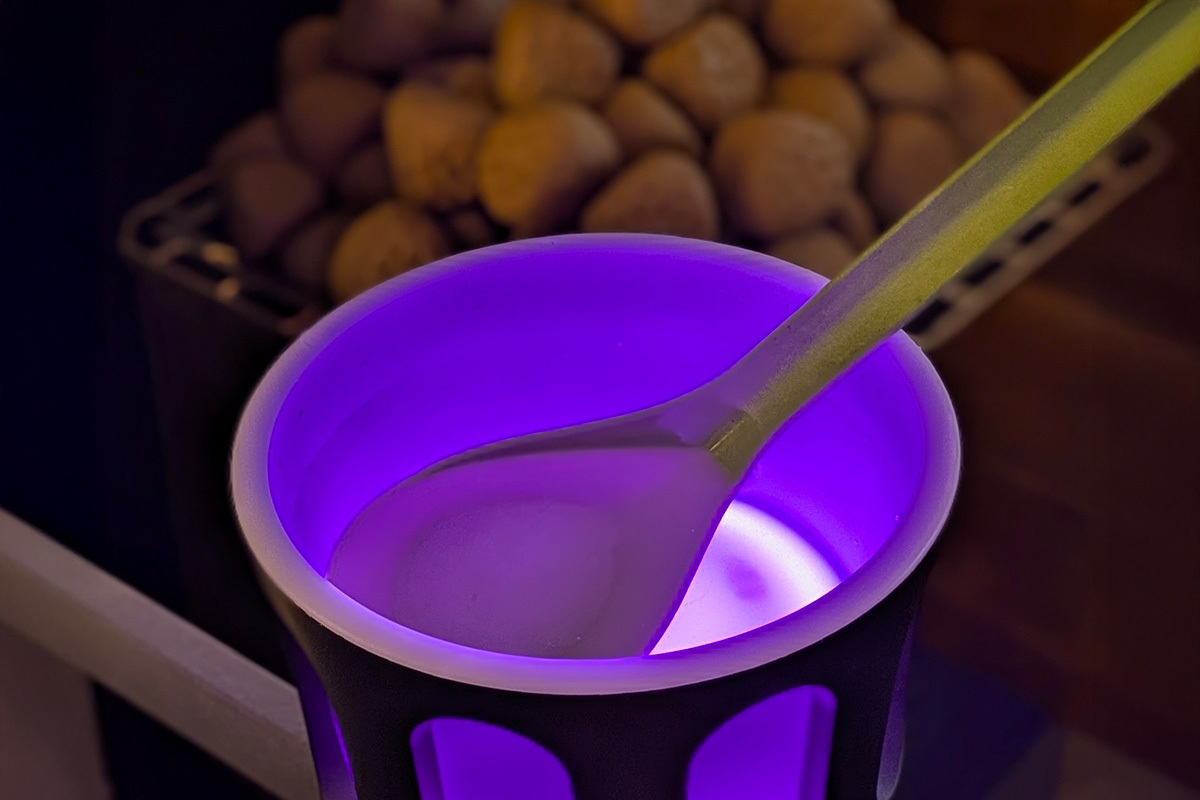 サウナ室では音楽と照明の演出を楽しみながらロウリュできるバケットとして、パーティーシーンではワインやカクテルを冷やしながら音楽を楽しむアイスバケツとしてなど、さまざまなシーンで多機能に用いることができるとしている。