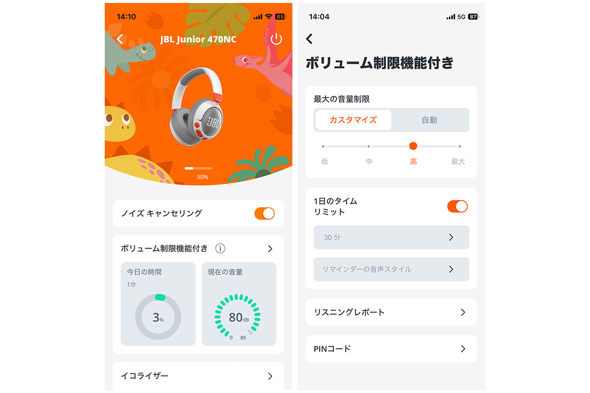 さらに専用アプリ「JBL Headphones」と連携することで、保護者による使用時間や音量等のモニタリング管理にも対応する。