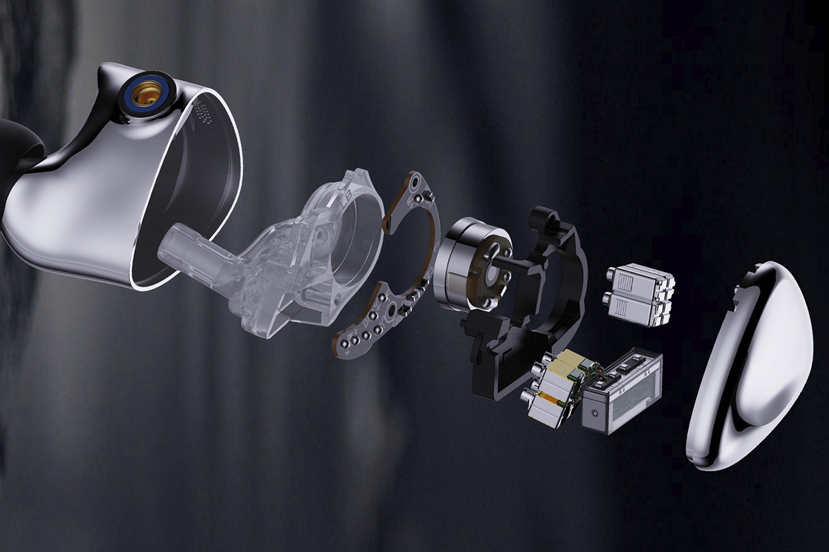 内部構造は、スーパーカーに見られるタービンにインスピレーションを得て新しく開発したという特許技術「S.Turbo Acoustic Structure Patent」を採用。同機構ではタービン形状の構造を通して音を導くことで低音を強化。また同時に、ダイナミックドライバーから発生する中高音域の余分な情報をフィルタリングすることで、低音域と中高音域の間のスムーズなクロスオーバーを実現したとのこと。