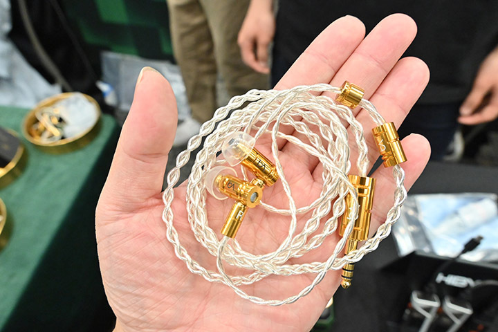 BAドライバー1基のシンプルな設計を採用しており、 “ケーブルによる音の違いを最大限に楽しんでもらいたい” というコンセプト。今回出展している試聴機は “結構良いケーブル” を取り付けているとのこと。まだまだ開発中のため発売時期は未定だが、価格としては同ブランドのケーブル “Supernovaシリーズ” から “Emeraldシリーズ” くらいを見込んでいるということで、6〜10万円クラスとなりそうだ。