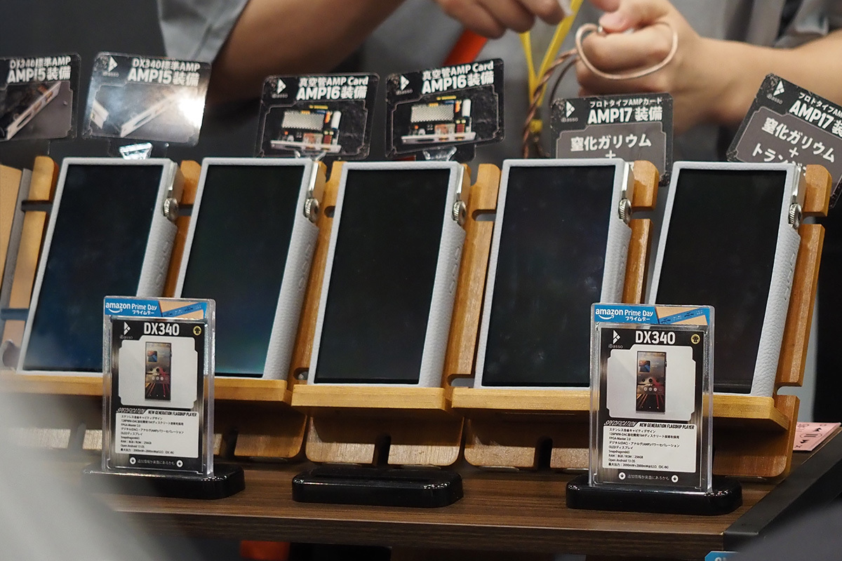 担当者がとくにお薦めとして紹介してくれたのが、iBassoのフラグシップDAP「DX340」の交換用AMPカード「AMP17」。デュアル真空管採用の「AMP16」に続く第2弾モデルで、AMP17では窒化ガリウムアンプ技術とトランジスタのハイブリッド構成を採用している。窒化ガリウムと複合してトランジスタに変化をかけることで、標準搭載である「AMP15」のノイズレスでクリアな音質をブラッシュアップし、アップテンポな要素を追加、クリアかつ迫力のある音に仕上げているという。