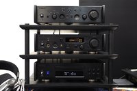 トライオードブースでは、CROSSZONE(クロスゾーン)が展開する頭外定位ヘッドホンを、TRIODEの真空管プリメインアンプ「TRV-88XR」、CDプレーヤー「TRV-CD6SE」と組み合わせて試聴できる。