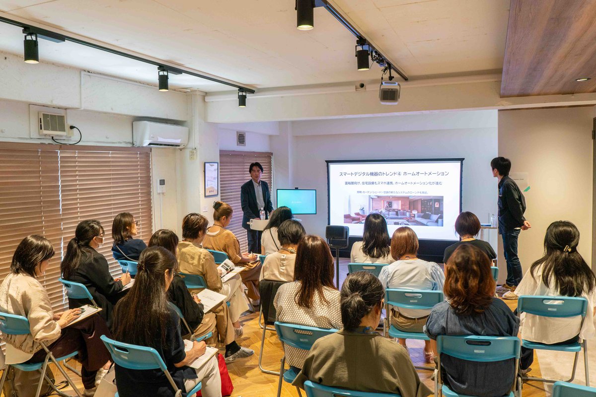 今回のセミナーで紹介したスマートアイテム、スマートプロジェクターの実機に触れることができる体験ブースも用意。また、各アイテムの使用シーンをイメージし、リビング/ダイニングやキッチン、ホームオフィスといった、利用シーンにマッチさせた空間提案も行っていた。