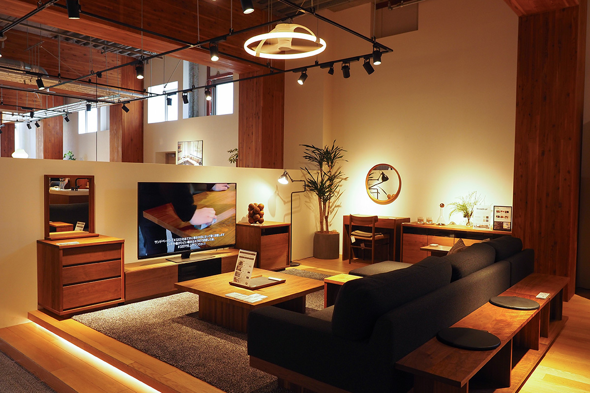 特にRENSEYの展示は直営店初となる。直線的でシャープなデザインを得意とするマスターウォールの家具に対して、RENSEYのアイテムは無垢材家具としての力強さを持ち合わせながらも、丸みを帯びた柔和なデザインが特徴だという。ランド オブ マスターウォール 横浜ではリビング/ダイニングのアイテムを中心に展示をおこなっている。