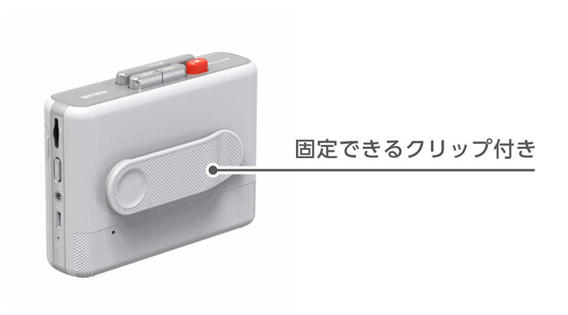 プレーヤー本体は持ち運びにも便利なコンパクトサイズで、背面部にはバッグの中などで固定できるクリップを備える。出力端子は3.5mmステレオミニプラグを装備。