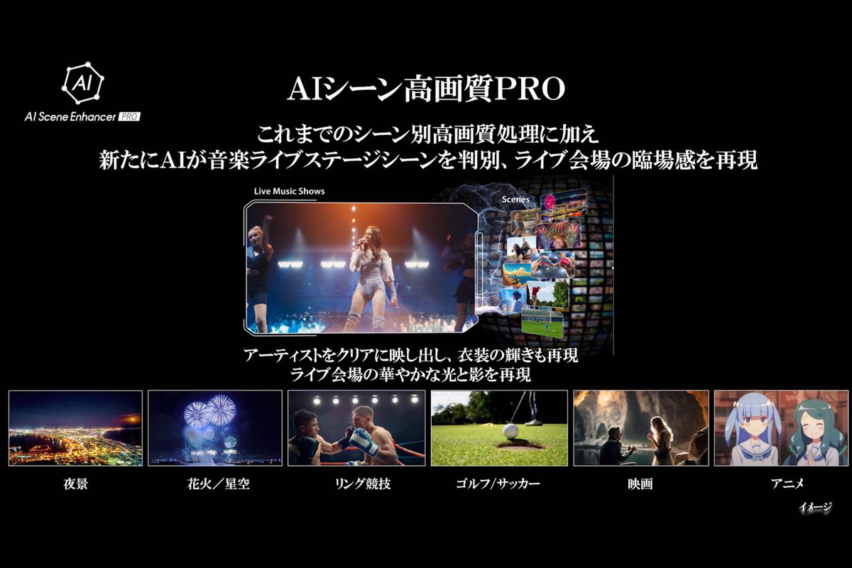 「X9シリーズ」と「Z9シリーズ」に共通しているのが、最新世代の「レグザエンジンZRα」を搭載している点であり、高画質機能の「AIシーン高画質PRO」では、新たにAIが音楽ライブステージシーンを判別して、ライブ会場の臨場感を再現できるようになったこともアピールした。