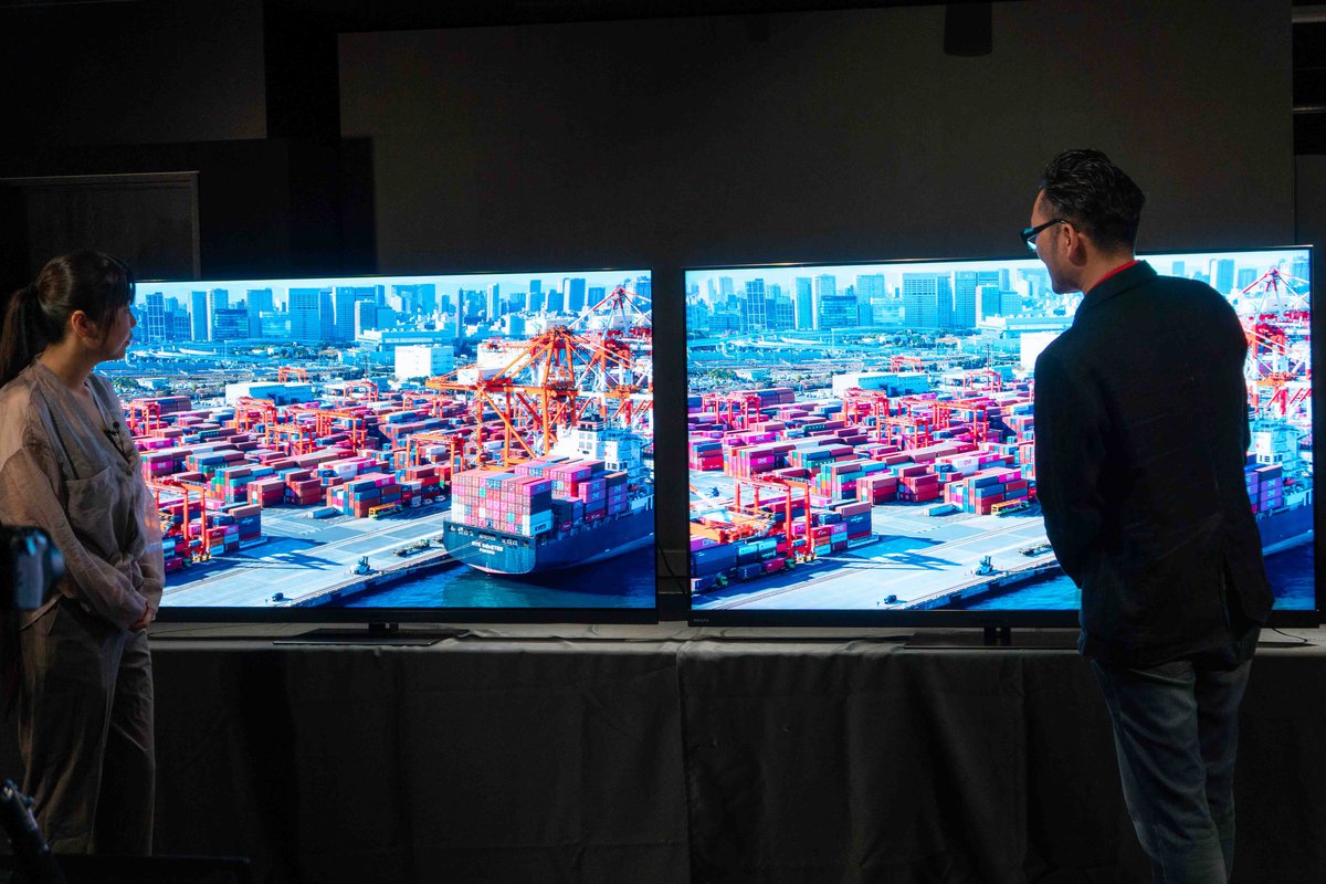 次に色再現にフォーカスを当ててチェックしていくと、「どちらも鮮やかで、こんなにも広色域だったのかと驚きました!」と折原氏が絶賛。「X9シリーズ」は、新開発パネルである「高輝度広色域 RGB4スタック有機ELパネル」が採用されたことによってRGBの色純度が向上し、色域の広さも量子ドット技術を採用した「Z9シリーズ」とほぼ同等になっていると住吉氏が解説した。
