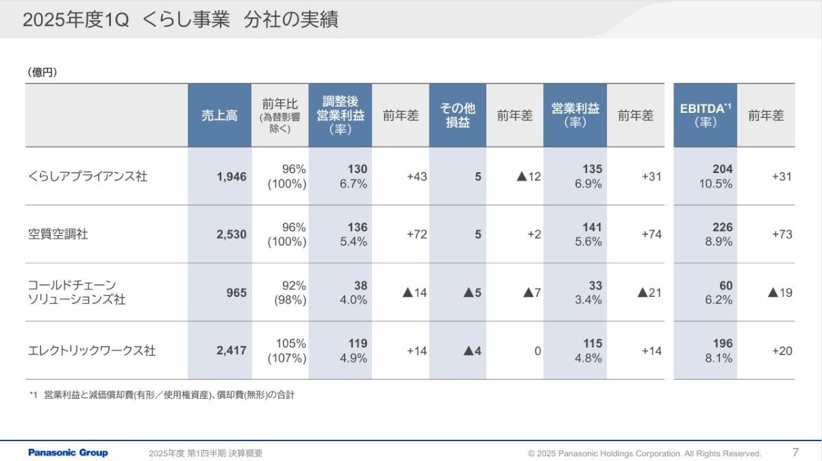 パナソニックHD、1Qは全セグメントで増収。26年4月発足の家電新会社の名称は「パナソニック株式会社」に