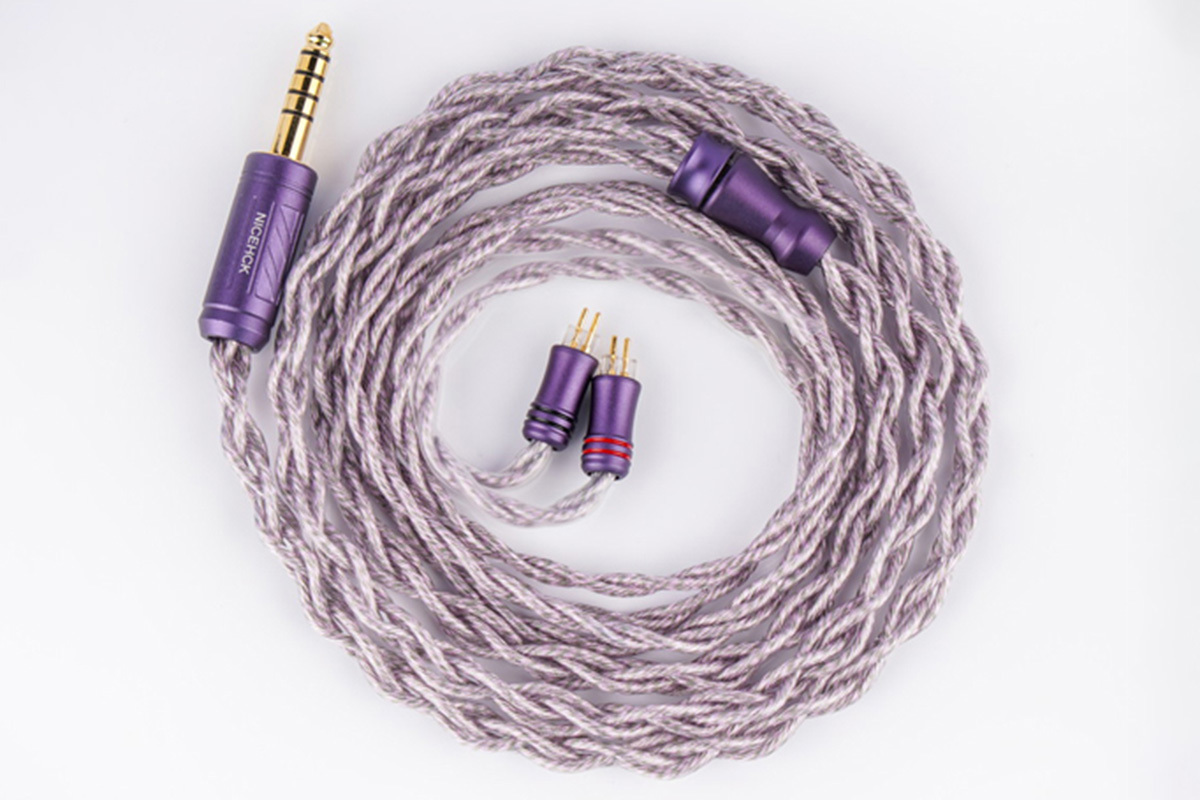 Ace Lilacは、導体に7N単結晶銅/7N銀メッキ単結晶銅を採用したイヤホンケーブル。イヤホンとの接合端子は0.78mm 2Pin/MMCXの2種を用意。再生機との接続は4.4mmプラグを装備。フィット感の高い耳掛け式を採用するほか、ライラックカラーでデザイン性を高めている。ケーブル長は1.2m。