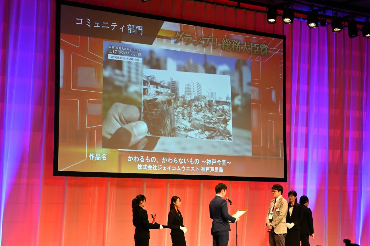 地域から発信される映像文化の発展とコンテンツ制作力の向上を目的に、昨年まで秋に開催していた「日本ケーブルテレビ大賞 番組アワード」を、今年は期間中に同時開催。グランプリ総務大臣賞は、株式会社ジェイコムウエスト神戸芦屋局「かわるもの、かわらないもの〜神戸今昔〜」、準グランプリは、株式会社倉敷ケーブルテレビ「真備町写真洗浄5年半の活動に節目」が受賞した。