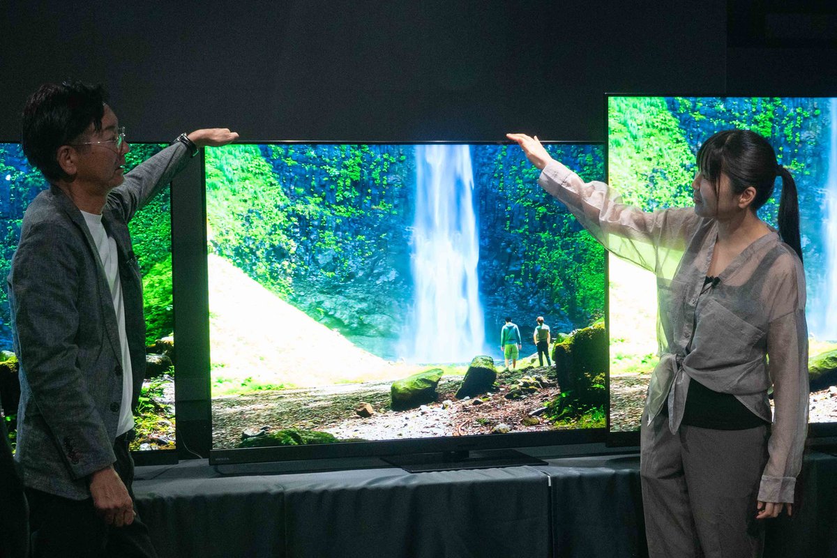 2025年度のフラグシップモデル群は、どちらも音質が大幅に進化したと荒船氏はアピール。今回の比較では、65V型の4K有機ELテレビ「65X9900R」と同じく65V型の4K Mini LED液晶テレビ「65Z970R」を並べて音質の違いをチェックしている。
