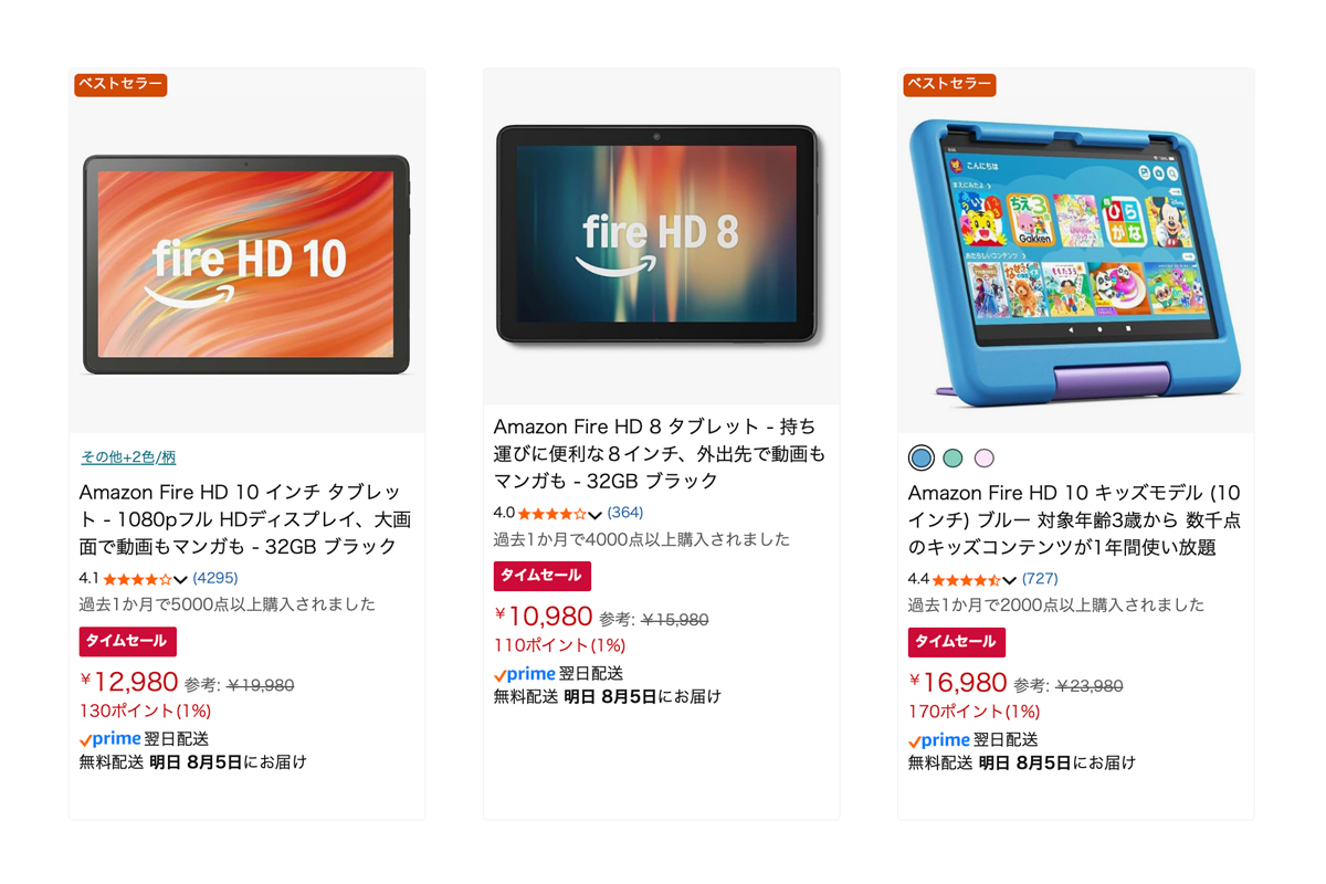 そのほか「Fire HD 10」や「Fire HD 8」のキッズモデルも最大30%オフとなっており、上位モデルの「キッズプロシリーズ」も同様にセール特価で販売中だ。