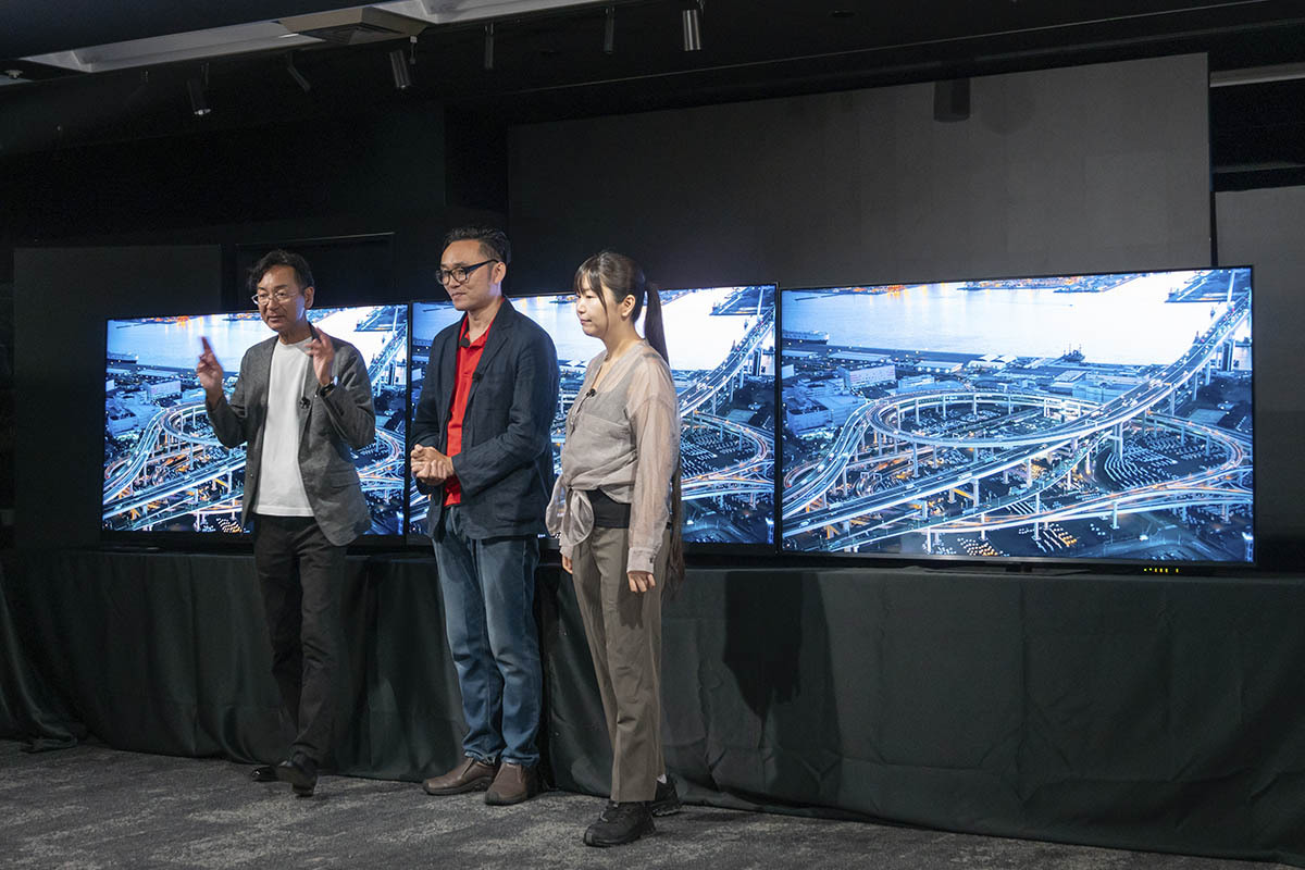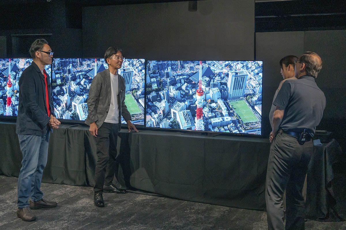 住吉氏は「赤の発色に着目してほしい」と夜景シーンの赤い電灯を指差す。実際に見比べてみると、確かに発色に違いがあるようで、本村氏は「65Z875R」と「65Z970R」に対して、「この2つはすごいね」と量子ドットシートによる色彩表現を絶賛した。