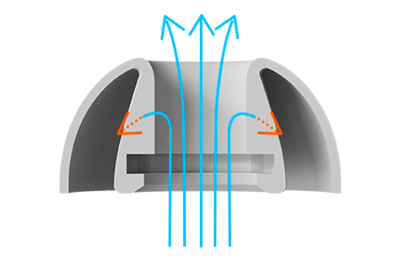 ハウジングとイヤーピースの設計も刷新。新ハウジングではオーバル状の音筒部をより大きく短い構造にすることで、音の分散を抑えつつ、音の方向を集中させることが可能に。これにより、音質向上とノイズキャンセリング効果の改善を促すと説明する。