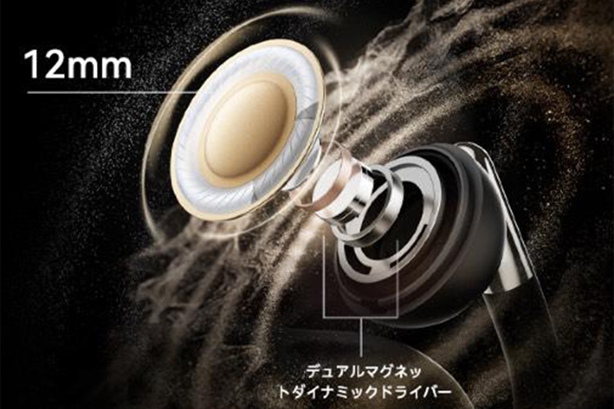 径12mmのチタンPVDコーティング振動板を2基の磁石で駆動する、デュアルマグネットダイナミックドライバーを搭載。PVD技術を用いて真空中で金属や化合物などを気化させ、振動板表面に被膜として蒸着させることで剛性を向上。歪みを抑え、伸びやかでクリアな中高域を実現した。さらに2基の磁石で駆動力を確保し、低域の力強さと重厚さの増進を図っている。