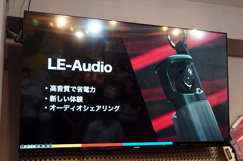 そのほかにも、左右のイヤホンに同時に音声が遅れるマルチストリーム転送により高い接続安定性を実現し、映像とのズレも大きく改善。1つのデバイスから複数のイヤホンに音を届けられる「オーディオシェアリング」もサポートすることで、空港や映画館などの公共空間での活用も期待できると訴えた。
