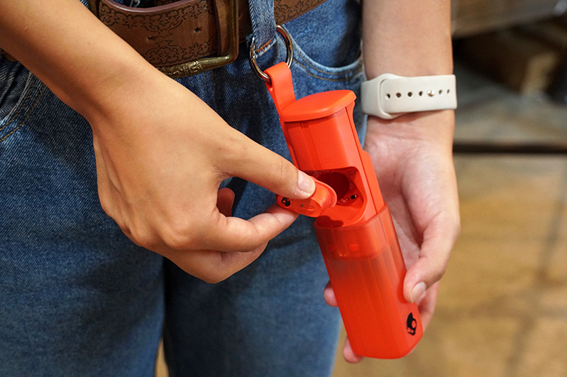 充電ケースは、カラビナ付きのスライダー式ケースとなっており、ケースをスライドすることでイヤホンの収納が可能。カラビナ付きによりかばんやのベルトループにも簡単に装着でき、持ち運びにも優れているとした。