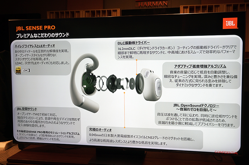 ハーマンインターナショナルは、JBLブランドにて、オープンイヤー型完全ワイヤレスイヤホンのフラッグシップモデル「JBL Sense Pro」の日本導入へ向けた支援プロジェクトを、クラウドファンディングサイトGREEN FUNDINGにて8月29日 10時から実施する。本稿では、本日開催されたメディア向け製品体験会の模様を中心にレポートする