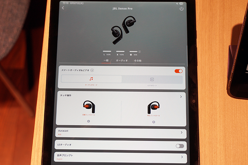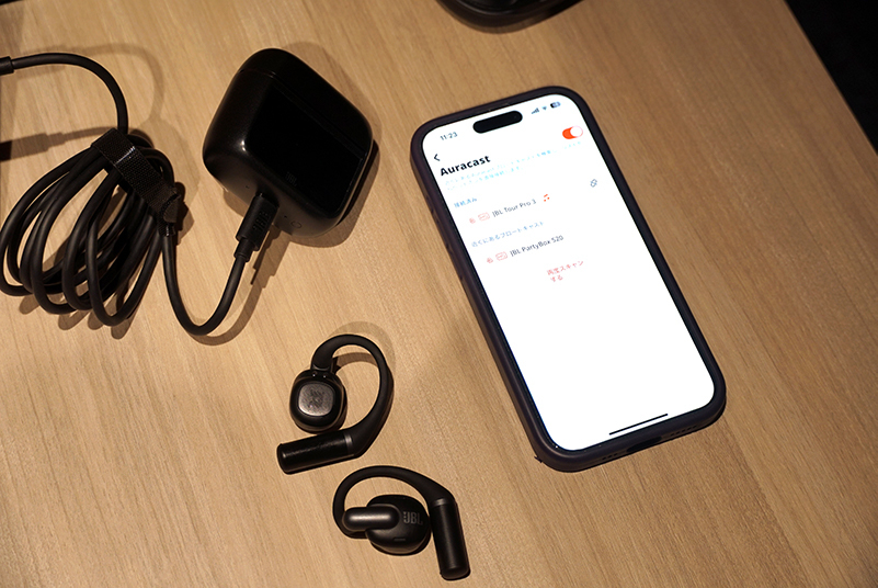 実際に試聴してみると、オープンイヤー型ながら鮮明で音の厚みがより感じられ、低音域も十分な量感が感じられた。そのほか、TOUR PRO3を親機として複数台のSense Proと連携し、実際にNetflix『ゴジラ-1.0』を試聴するAuracastデモも体験。受信機となるSense Proで試聴しても、特に接続安定性や音質が劣ることのないさまを体感できた。
