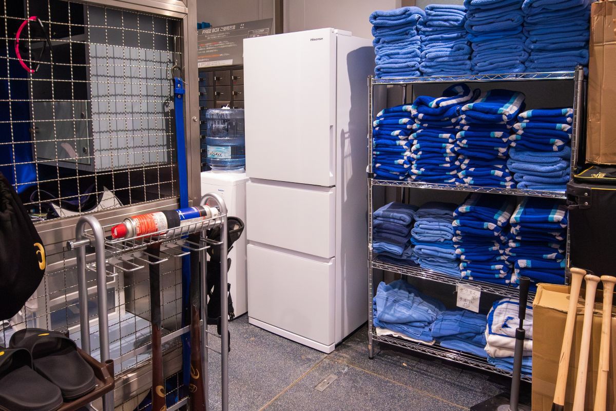 総合家電メーカーであるハイセンスジャパンでは、“家電” でチーム、選手の生活をサポートするユニークな取り組みにも力を入れている。横浜スタジアム内には、選手ロッカーとチーム運営室にハイセンスの大型冷蔵庫「HR-G3601W」を、ランドリーには大型洗濯機「HW-DG100XH」を寄贈した。洗濯機にはランドリースタッフの要望をヒアリングした洗濯モード「横浜DeNAベイスターズモード」を特別に設定。業務をサポートし、現場スタッフの負荷軽減に貢献する。